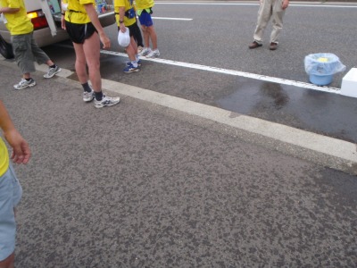 貴重な休憩時間が></ みなさん日影で休んだりセブンイレブンで買い物したりしていたのに。。 そして無情のピストルの準備が・・・ |