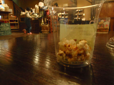 あっという間に(でもないのですが(笑))目的の温泉宿につきました! ここは「水上温泉郷 湯檜曽(ゆびそ)温泉 天空の湯 なかや旅館」です!! ロビーではキャラメルポップコーンの試食を頂きました。 ←本当はコップ一杯ありますよ!(笑) |