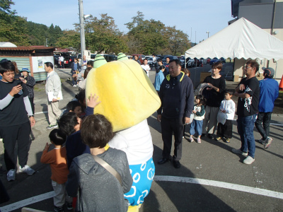 そしてえちゴンのライバル? 鯖石のゆるキャラ鯖カッパ!! 手作り感がまた○なっしーのようでいいですね(^^) こちらも周りの小学生から人気でした!! |