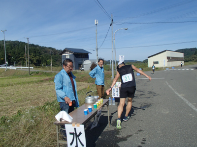 10:21(0:16) 給水だー!! やっぱり給水所ってマラソン大会の醍醐味! 日頃の練習だと水持って走ってるしなー。 |