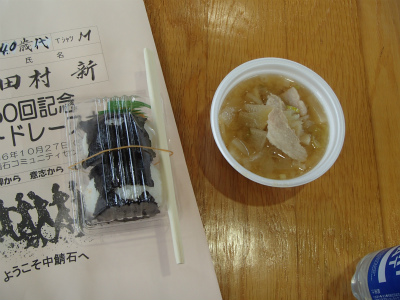 と思ったら40歳代の部で5位で呼ばれました!!!(部門12人しかいませんが) タイム48分48秒!! めちゃ頑張った!! ただこのタイムだと50歳代の部だったら8位、60歳以上の部だと9位になります(笑) 鯖石の先輩方は元気すぎでしょ(爆) |